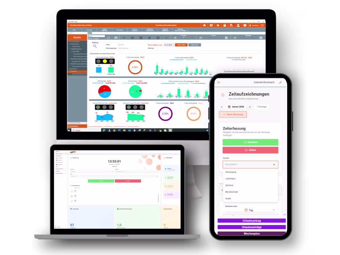 - Live-Dashboard: Überstunden, Urlaub & Projekte in Echtzeit